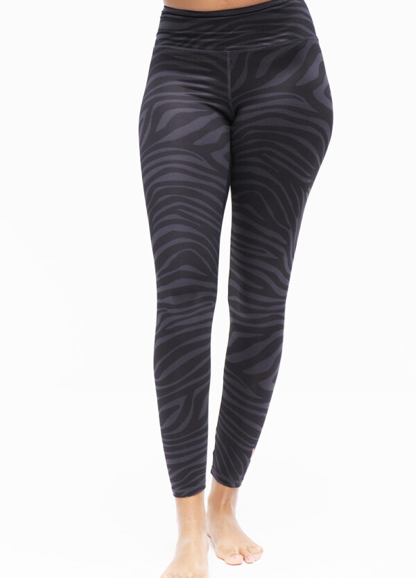 DETAILS: The high waistband of the Ganga 7/8 – Zebra Anthracite yoga leggings feels soft, fits like a second skin and shapes your waist and hips perfectly. The cut and material perfectly accentuate your waist, hips and bottom. There is no annoying pulling up, even when bending over or looking down, and the leggings are of course opaque with every movement. We work with a lot of experience and attention to detail to make you feel your best. Kismet leggings and bras support your every move and show off your most beautiful side with their perfect fit. 7/8 means our Ganga leggings are ankle-length and have a side length of 84 cm in size S.
