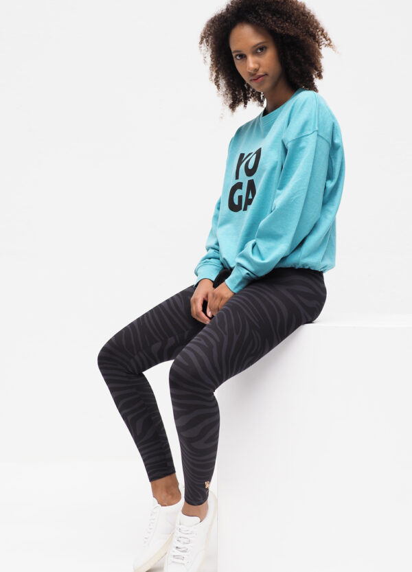 STYLINGTIP: Together with the Yoga Tank Shakti – White Logo Gold and the Yoga Bra Top Amba Zebra Anthracite , the Yoga Leggings Ganga 7/8 – Zebra Anthracite become a comfortable and functional outfit not only on the mat. Our Garuda – Turquoise Marl sweat shirt and sneakers will get you through the day in a casual way.